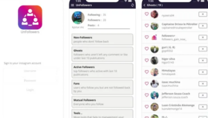 Pengguna dapat melacak pengikut mereka saat ini, berhenti mengikuti, dan pengikut hantu hanya dengan satu ketukan. Kalian juga dapat berhenti mengikuti pengguna Instagram secara massal, mendeteksi pemblokir, melihat penggemar Kalian, suka teratas, pemberi komentar teratas; dan banyak lagi. Aplikasi ini adalah alat paling akurat dan tercepat untuk mendapatkan analitik lengkap untuk Instagram. Antarmukanya bersih dan mudah digunakan.